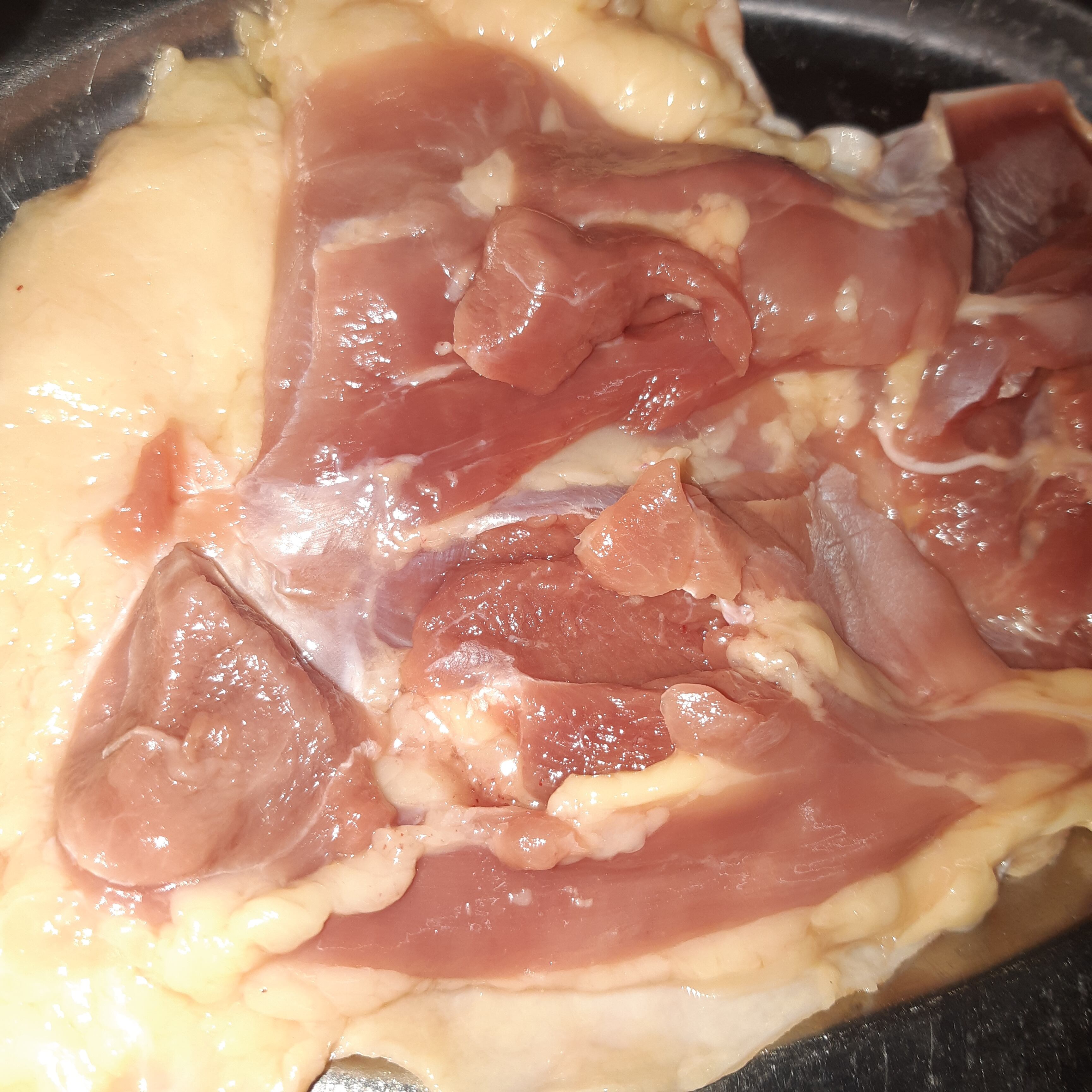 < 原 材 料 > 鶏肉(国産)、塩こしょう(食塩、でん粉、香辛料)、ガーリックパウダー/調味料(アミノ酸)、(一部に鶏肉を含む)